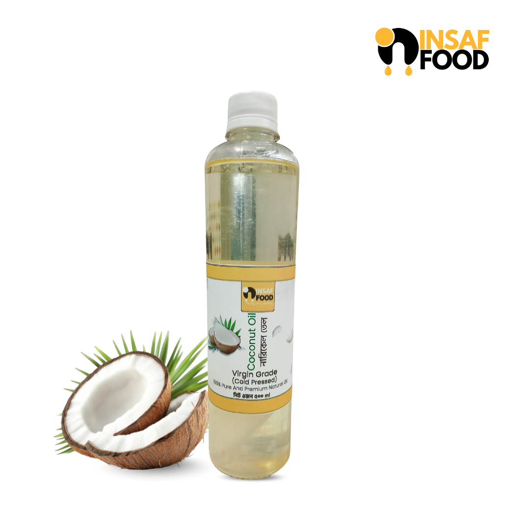 একেবারে খাঁটি, **কোল্ড-প্রেসড নারকেল তেল** — যা একসাথে খাবার, চুল ও ত্বকের যত্নে অসাধারণ!
